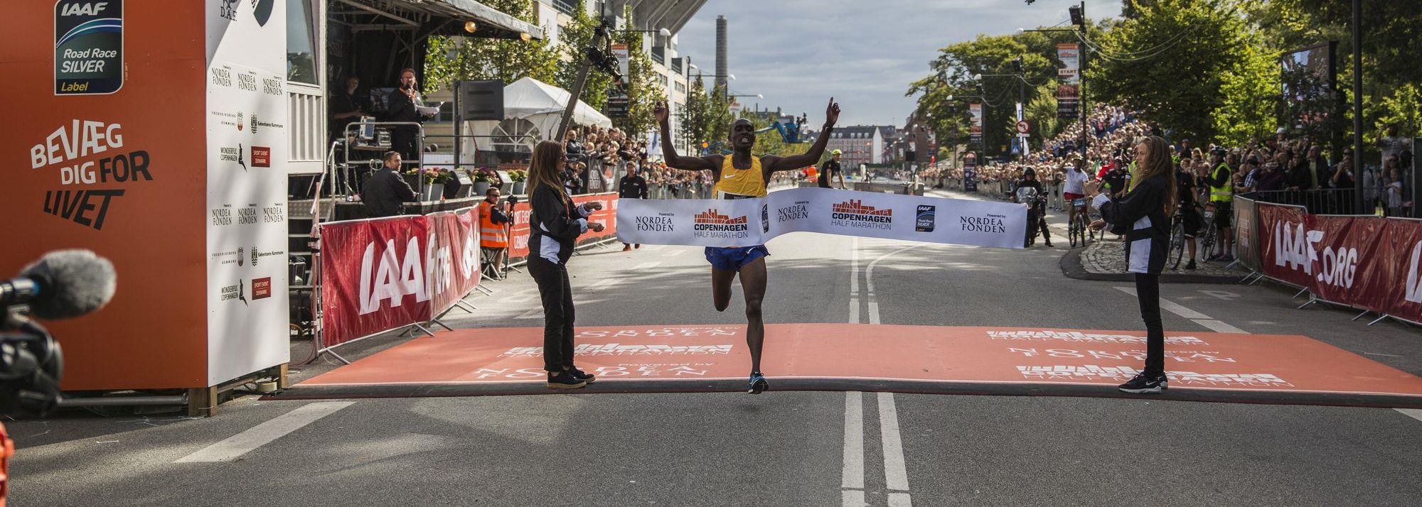 James Mwangi Wangari winning the 2016 Copenhagen Half Marathon (© organisers)
