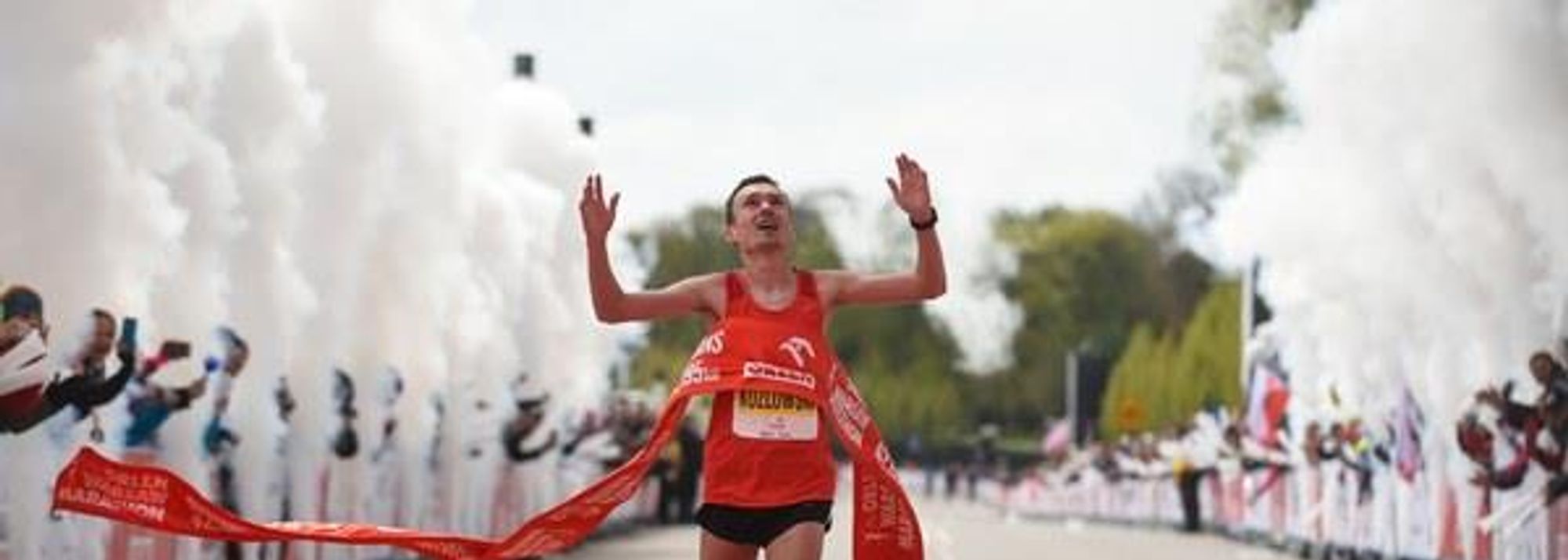 Artur Kozlowski winning at the 2016 Orlen Warsaw Marathon (© 2016 Orlen Warsaw Marathon)