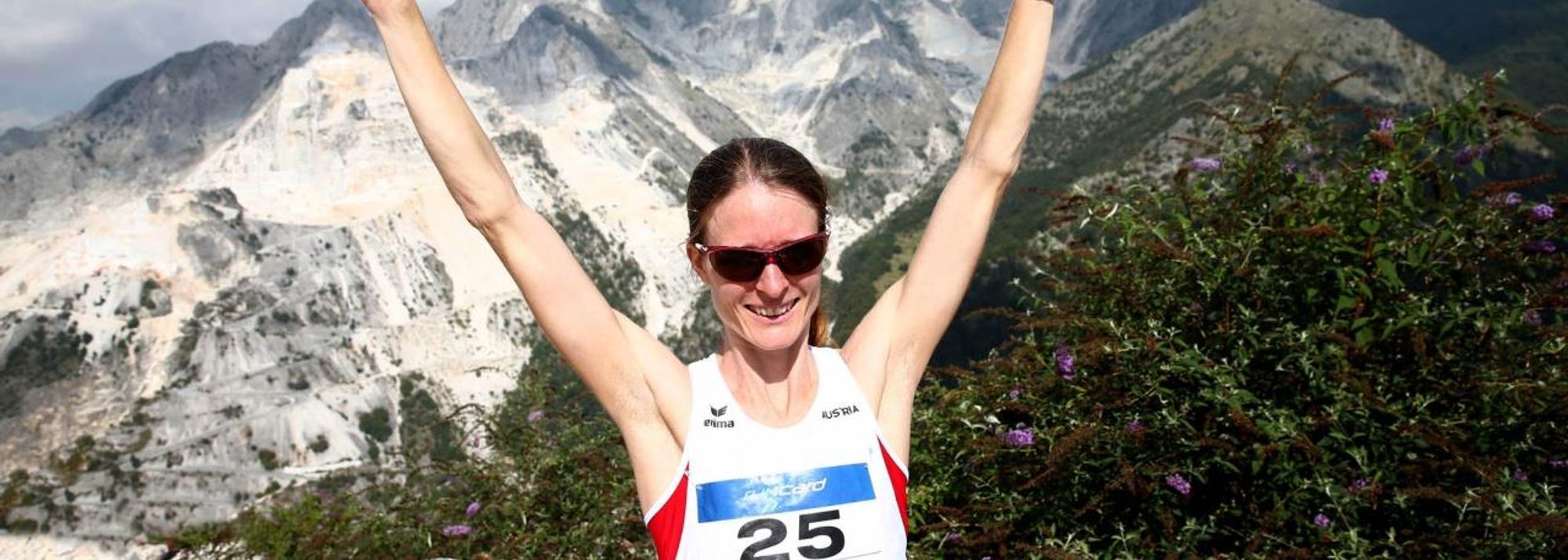 Andrea Mayr after winning at the 2014 WMRA World Mountain Running Championships (© Giancarlo Colombo / organisers)