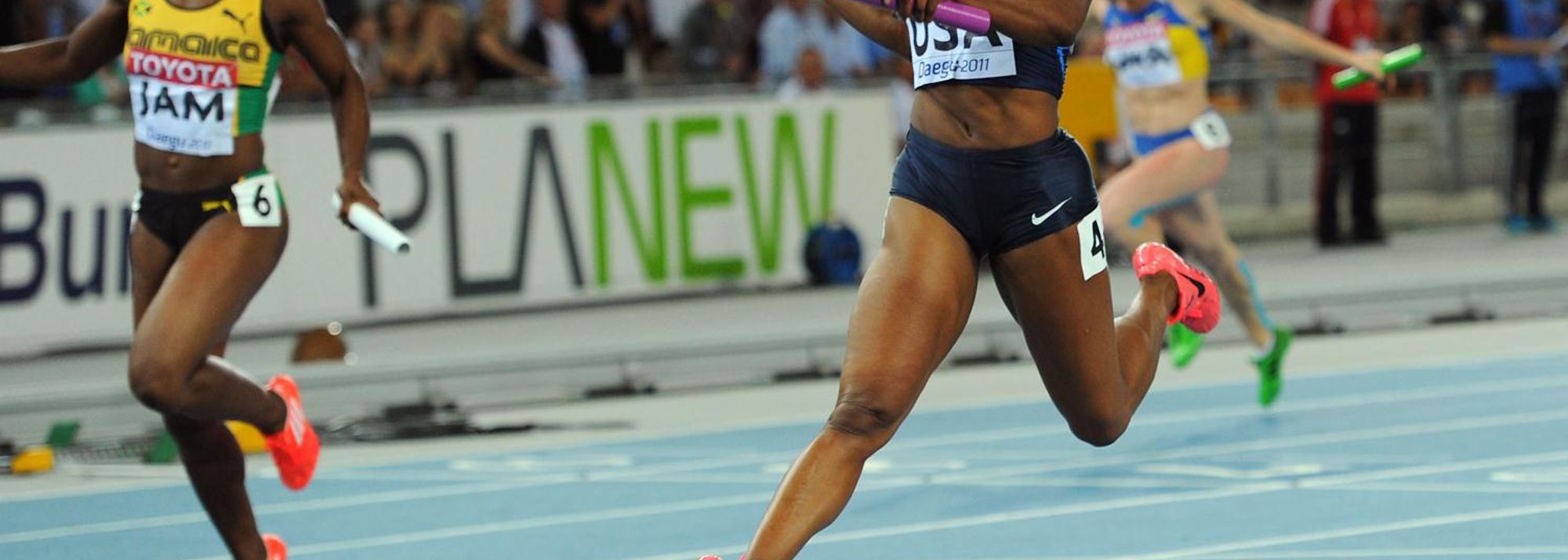 As well as drafting in Jeter for the final, the US were able to supplement their team with the 200m bronze medallist Allyson Felix, who maintained the lead she had been handed by first leg runner Bianca Knight before handing on to Marshavet Myers, who extended it against her third leg opponent, Simpson.