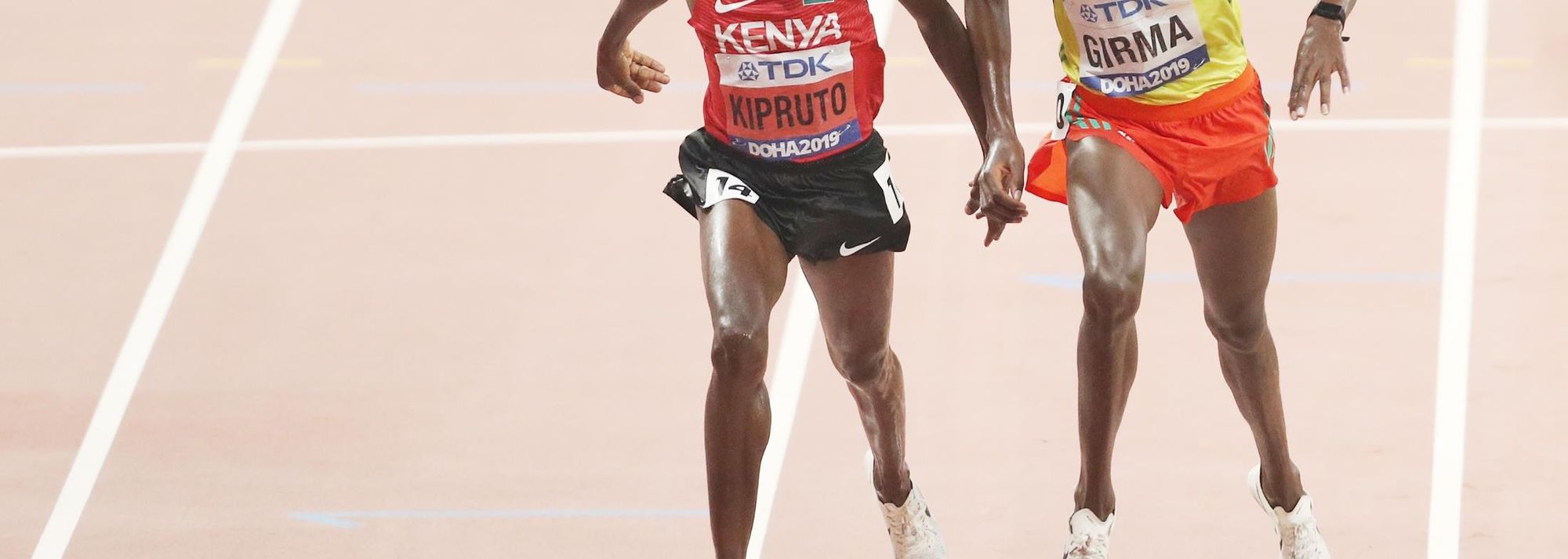 What a finish! Kenya's Conseslus Kipruto takes the world title on 0.01 at the IAAF World Championships Doha 2019 (© Getty Images)