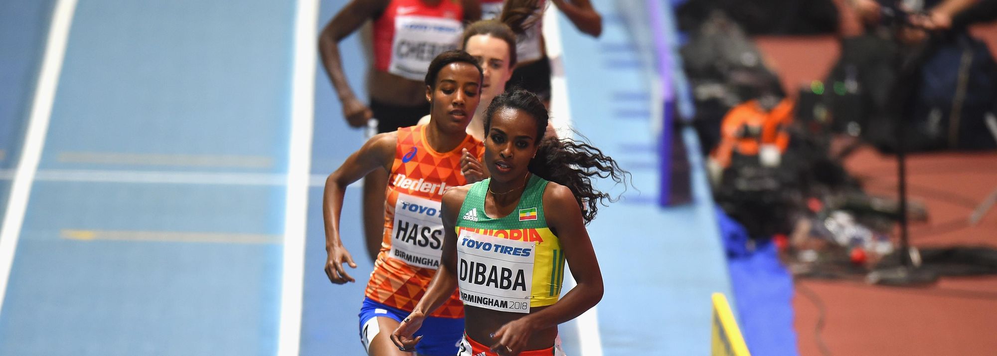 Genzebe Dibaba in the 1500m at the IAAF World Indoor Championships Birmingham 2018 (© Getty Images)