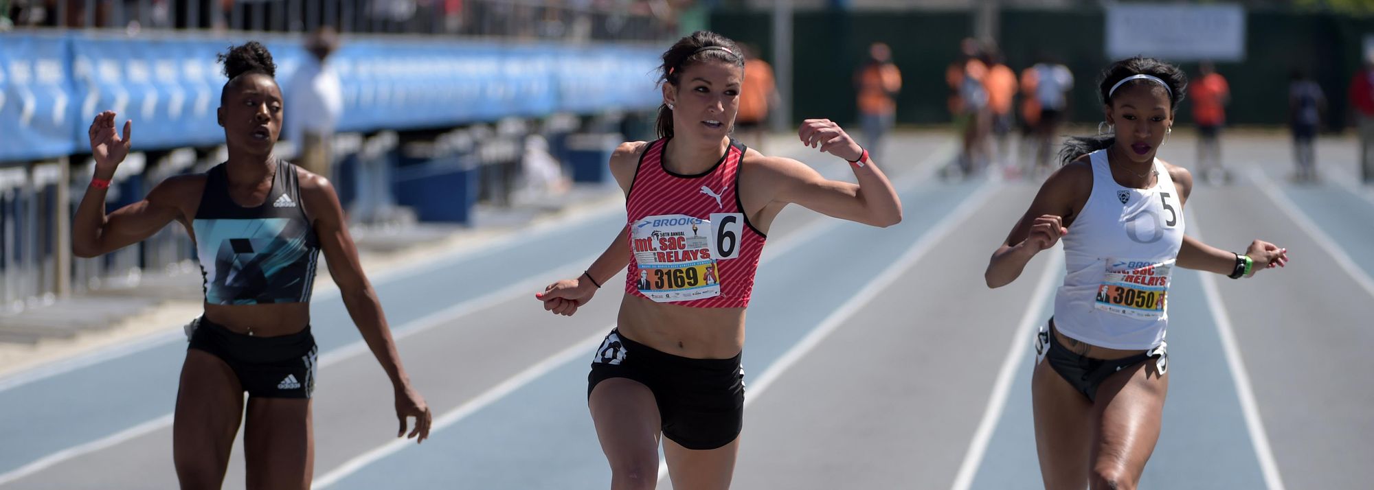 Jenna Prandini wins the 100m at Mt. SAC (© Kirby Lee)