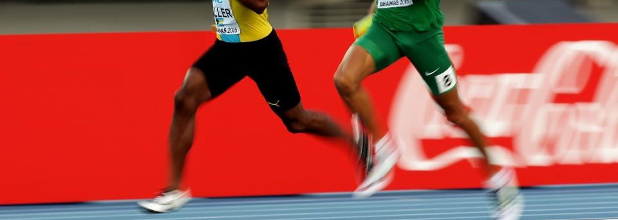 Ramon Miller of The Bahamas and Hugo De Sousa of Brazil in the 4x400m heats at the IAAF/BTC World Relays, Bahamas 2015 (© Getty Images)