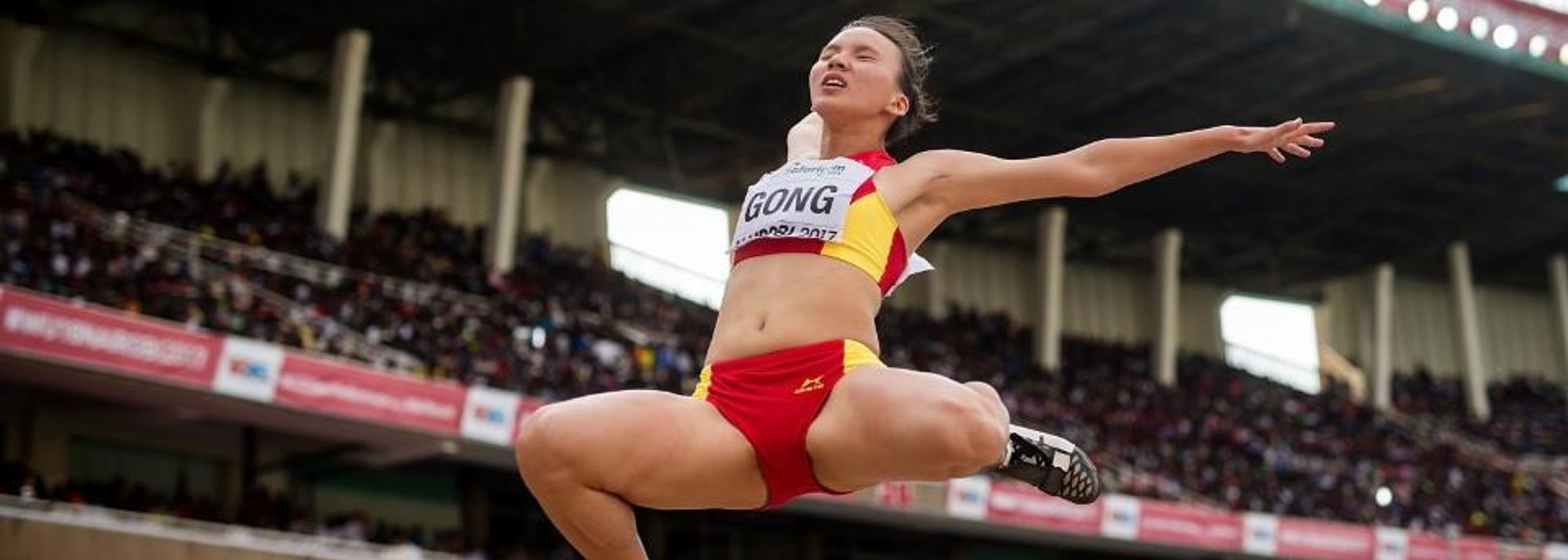 Gong closed out the competition in style with a jump of 6.34m, the second best distance of the competition to confirm her gold was a well-deserved one.
