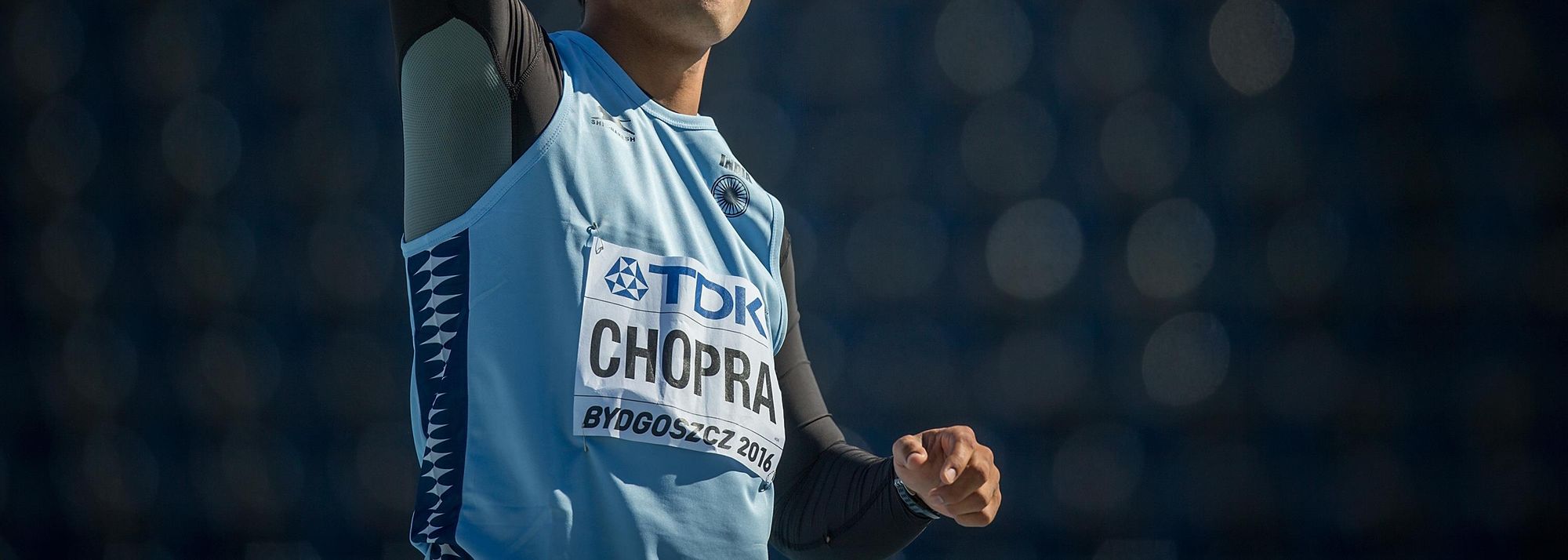 Neeraj Chopra of India during the men's javelin final at the IAAF World U20 Championships Bydgoszcz 2016 (© Getty Images)