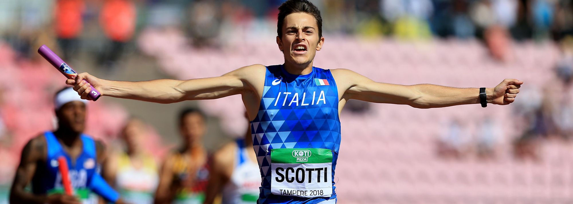 Edoardo Scotti anchors Italy to gold in the 4x400m at the IAAF World U20 Championships Tampere 2018 (© Getty Images)