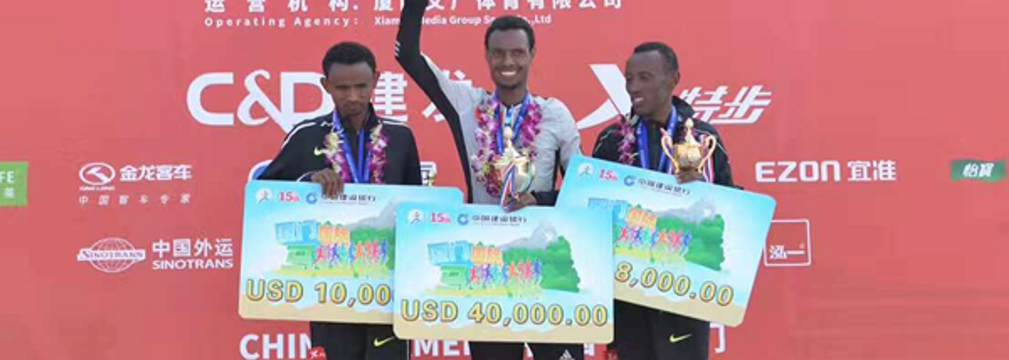 Lemi Berhanu after winning the Xiamen Marathon (© Organisers)