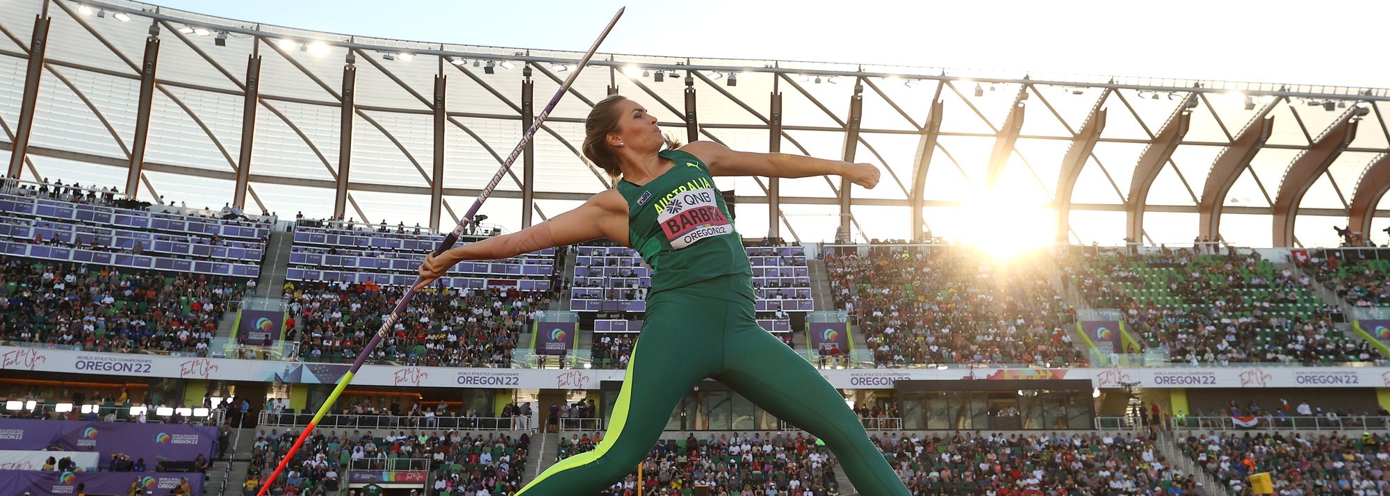 Kelsey-Lee Barber in the javelin at the World Athletics Championships Oregon22 (© Getty Images)