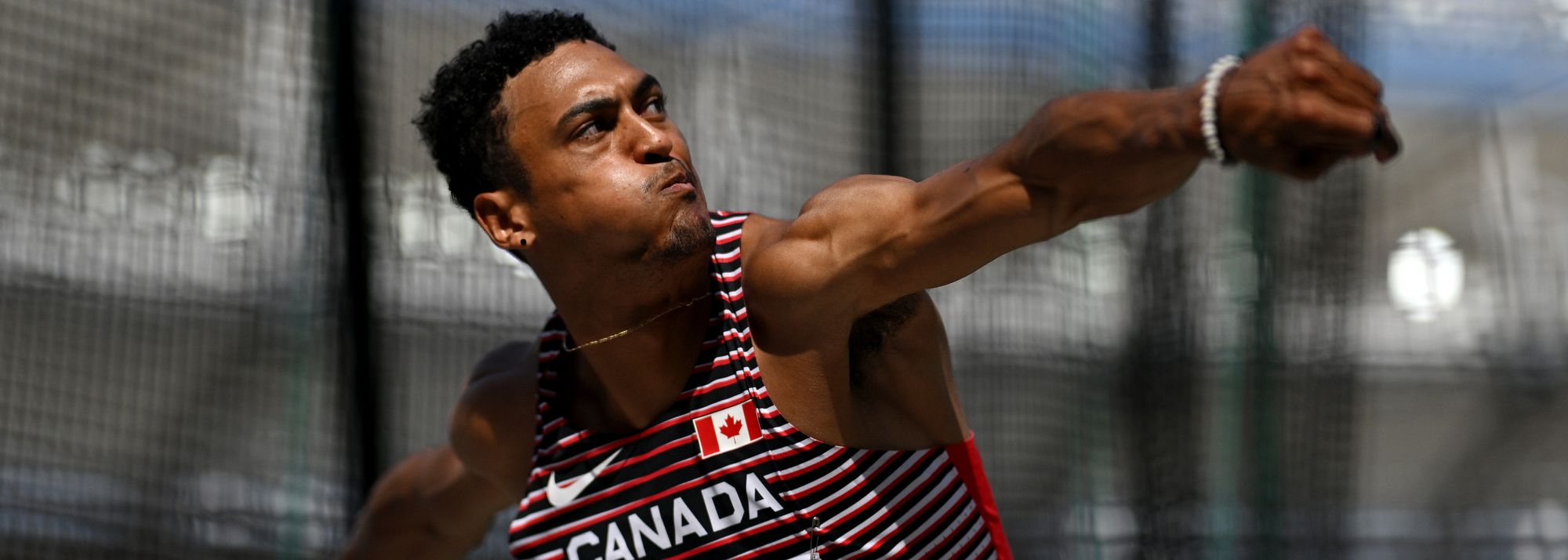 Pierce LePage in the decathlon discus at the World Athletics Championships Budapest 23 (© Getty Images)