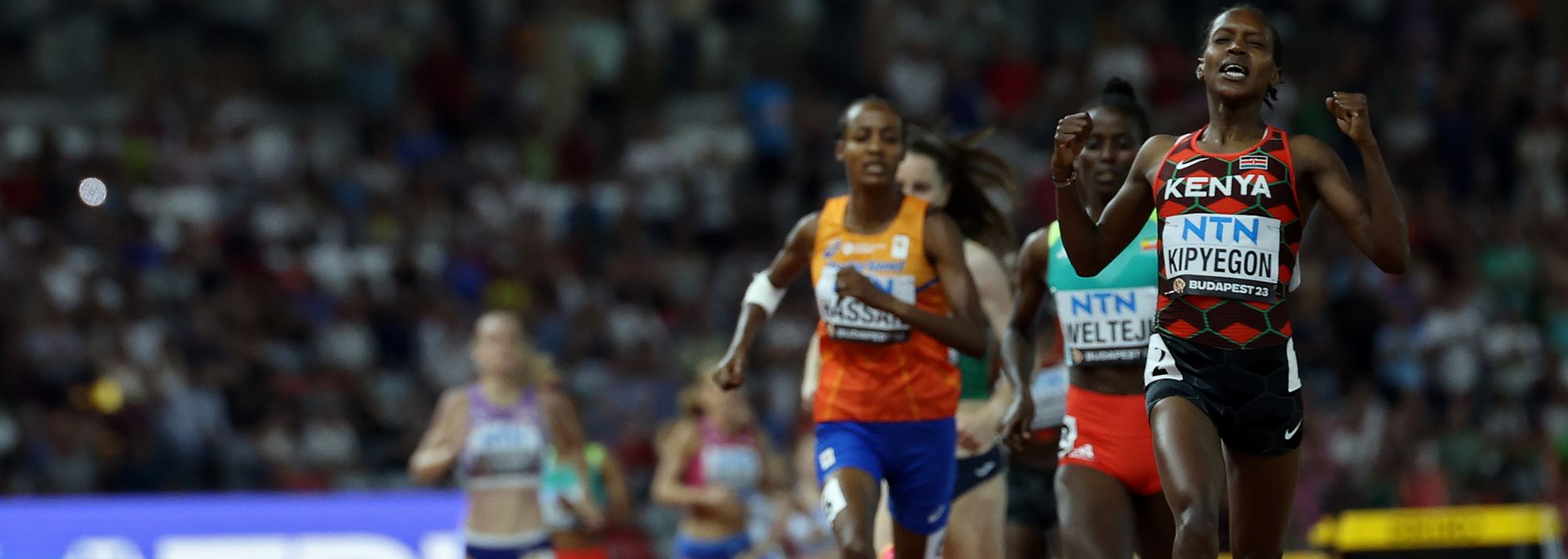 Faith Kipyegon wins the 1500m at the World Athletics Championships Budapest 23 (© Getty Images)