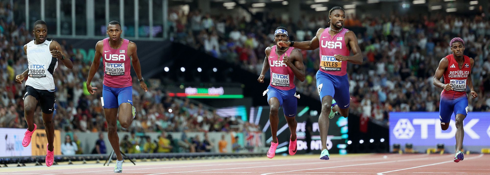 The hardest part of that triple triumph in Budapest’s newly-built National Stadium was the first one. While Lyles has been getting consistently faster over the shorter distance, he was far from being the favourite, having finished third at the US Trials after recovering from Covid.
