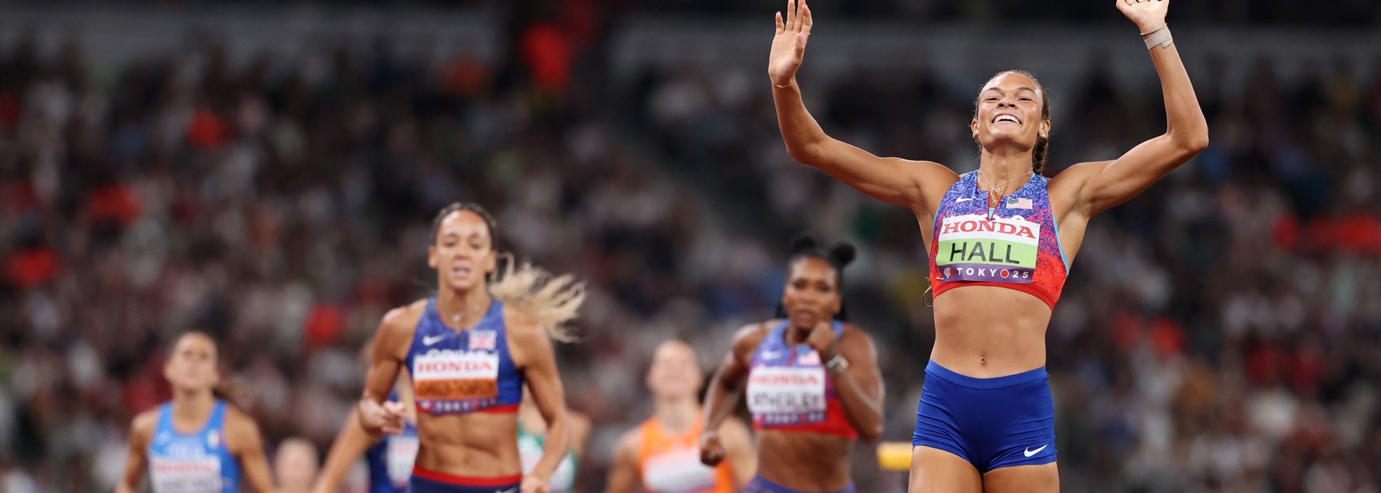 - Anna Hall became the first woman from the United States to win world heptathlon gold since 1993. Having earned world bronze in 2022 and silver in 2023, the 24-year-old completed her medal set with a total of 6888. Kate O'Connor set an Irish record of 6714 to take silver, while Britain's defending champion Katarina Johnson-Thompson shared bronze with Hall’s teammate Taliyah Brooks, both scoring 6581.