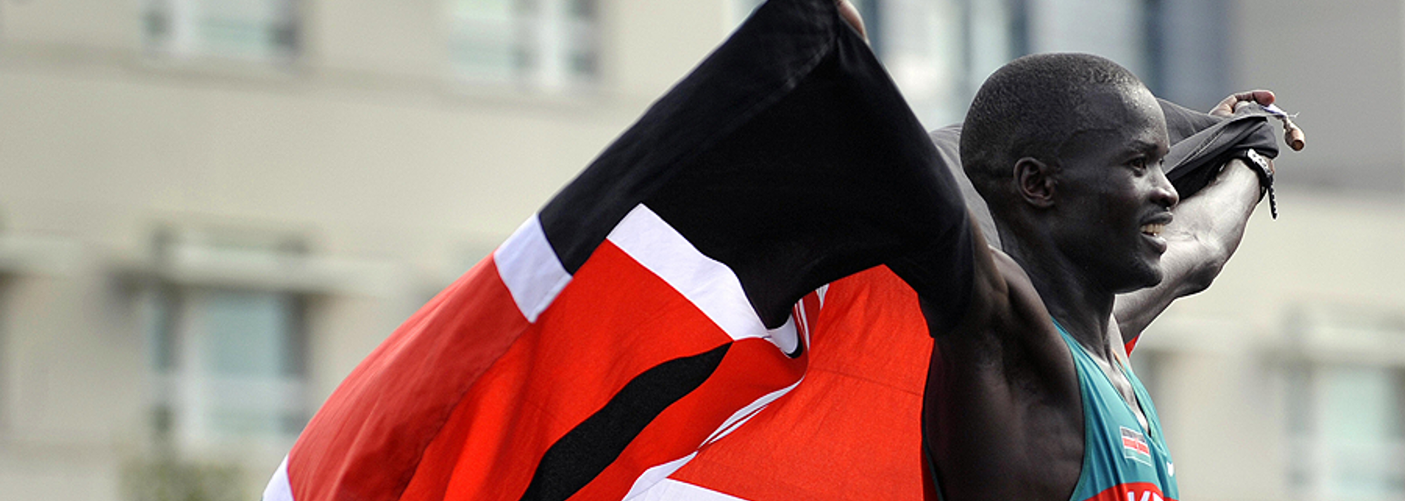 Abel Kirui after winning the marathon at the IAAF World Championships Berlin 2009 (© AFP / Getty Images)