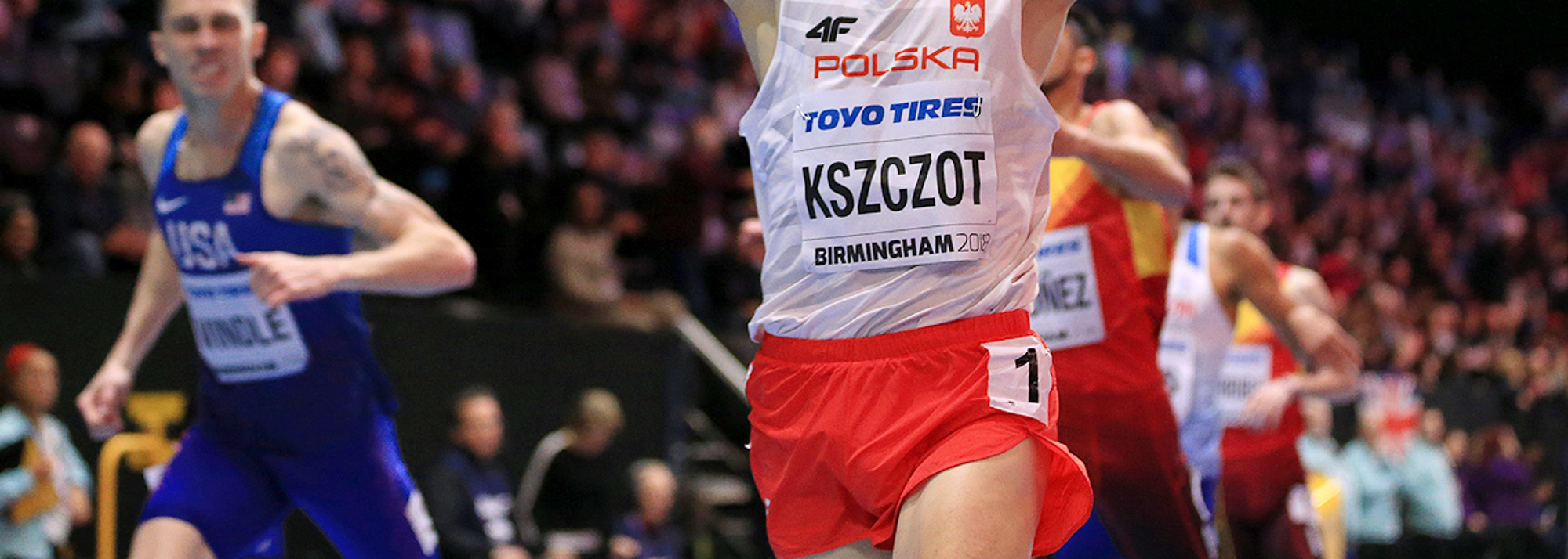 Adam Kszczot wins the 800m at the 2018 World Indoor Championships in Birmingham (© Getty Images)