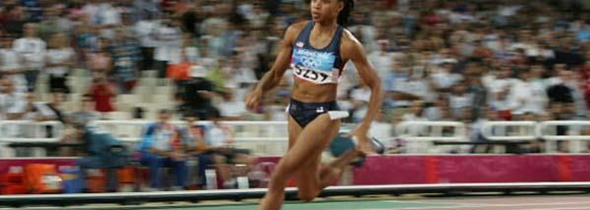 Allyson Felix of the US runs to silver in the 200m at the 2004 Olympics (© Getty Images)