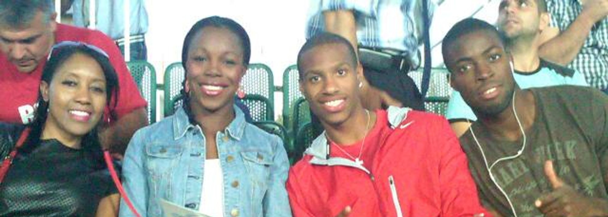 Veronica Campbell-Brown and friends enjoying a football match in Budapest (© Claude Bryan)