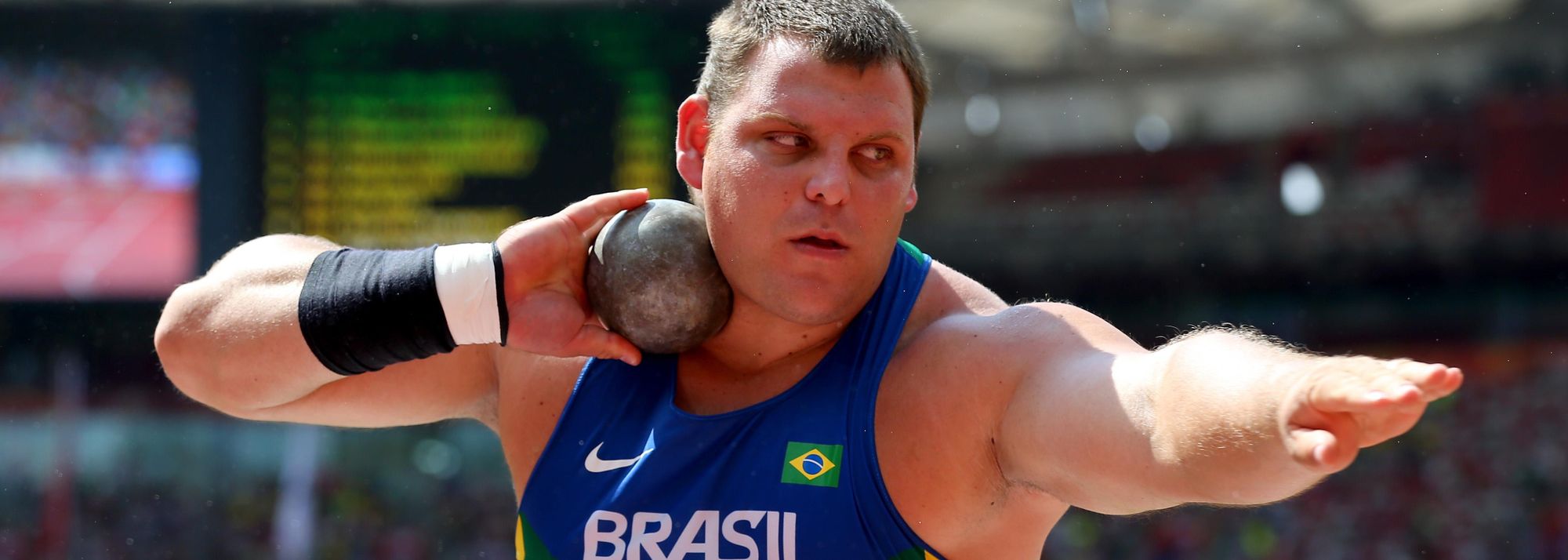 Darlan Romani in the shot put at the IAAF World Championships Beijing 2015 (© Getty Images)