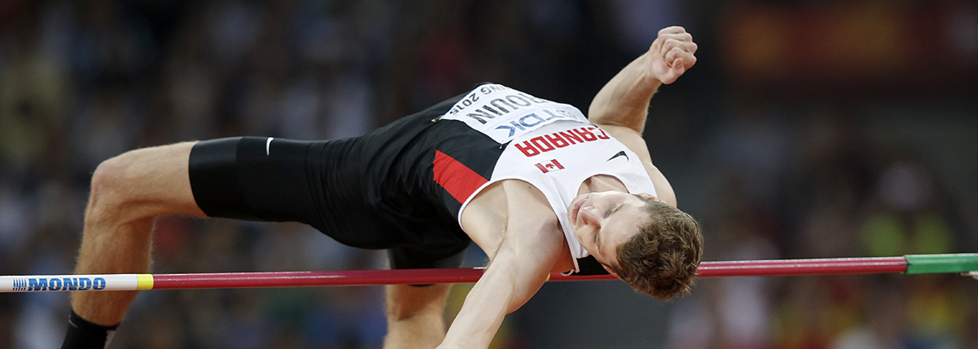 Derek Drouin in the high jump at the IAAF World Championships Beijing 2015 (© AFP / Getty Images)