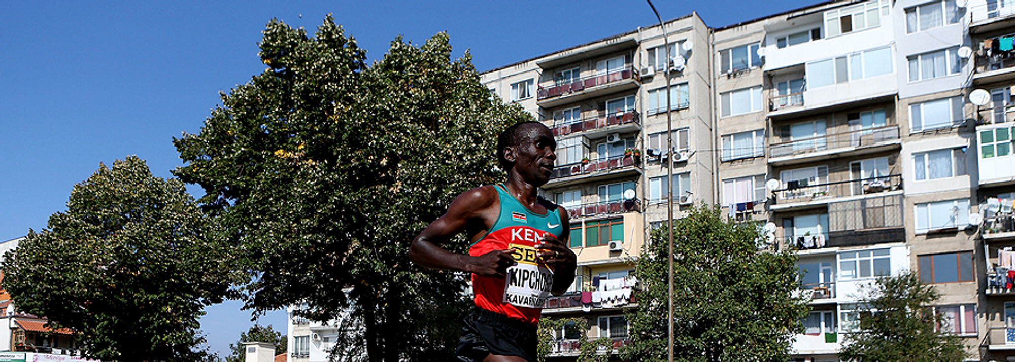 Eliud Kipchoge in action at the 2012 IAAF World Half Marathon Championships (© Getty Images)
