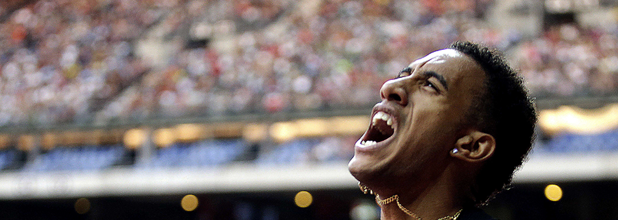 Orlando Ortega after winning the 110m hurdles (© AFP / Getty Images)
