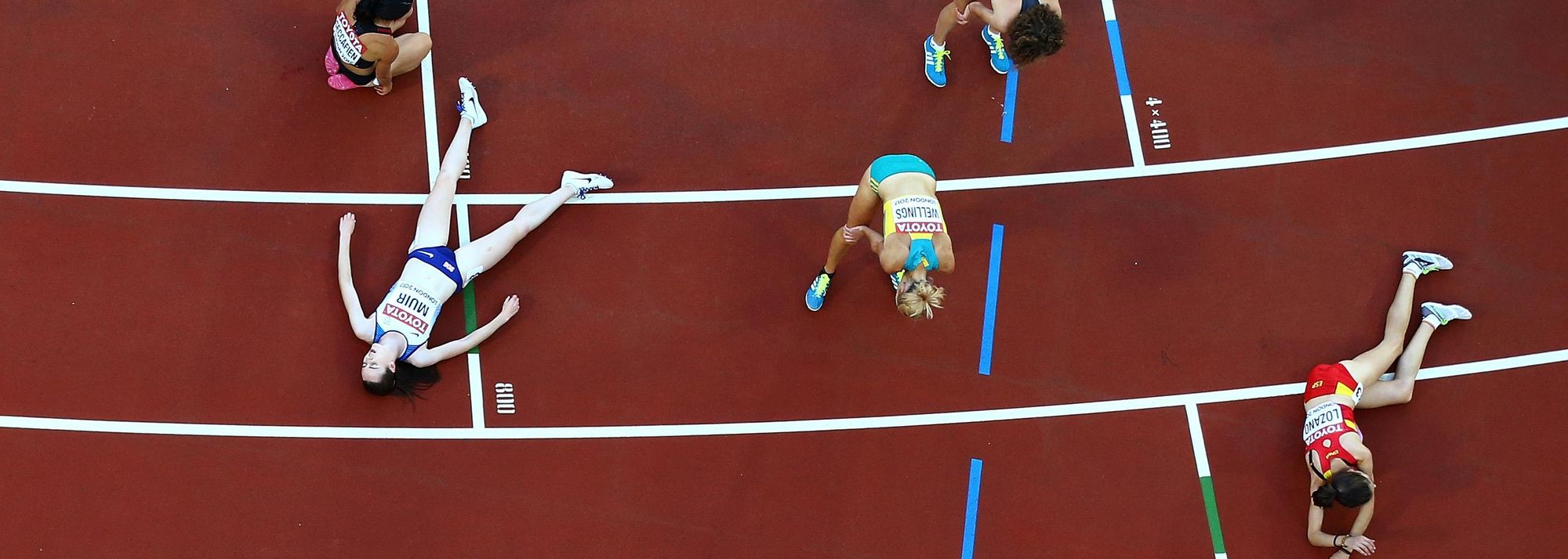 "During the World Championships, I had installed a few remote cameras above the track for certain races at various angles. Close to the finish line, we had a camera looking down on the line for sprint finishes but I decided to frame another one after the line for looking down in the hope of taking shots of athletes collapsing after finishing the decathlon 1500m and the 5000m and 10,000m races.