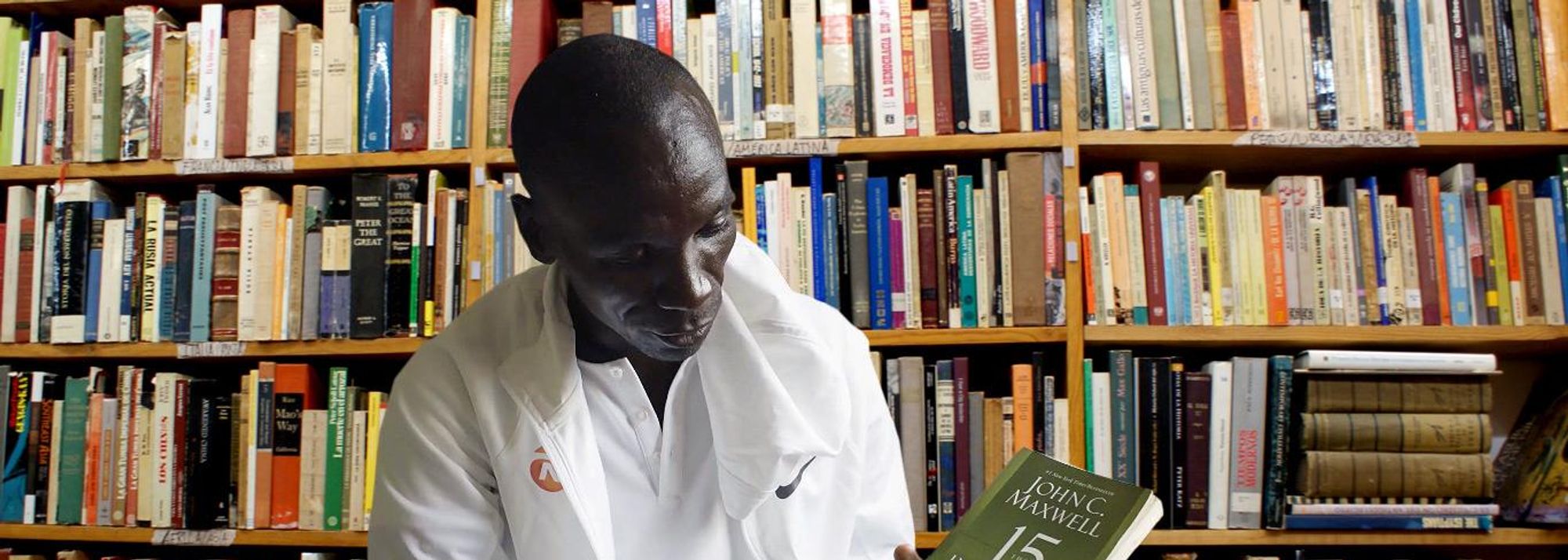 At the Global Sports Communication training camp in Kaptagat we have set up the Sandy Bodecker Library (named after the late Nike VP of Special Projects and Eliud’s good friend) to encourage as many in the camp as possible to read.