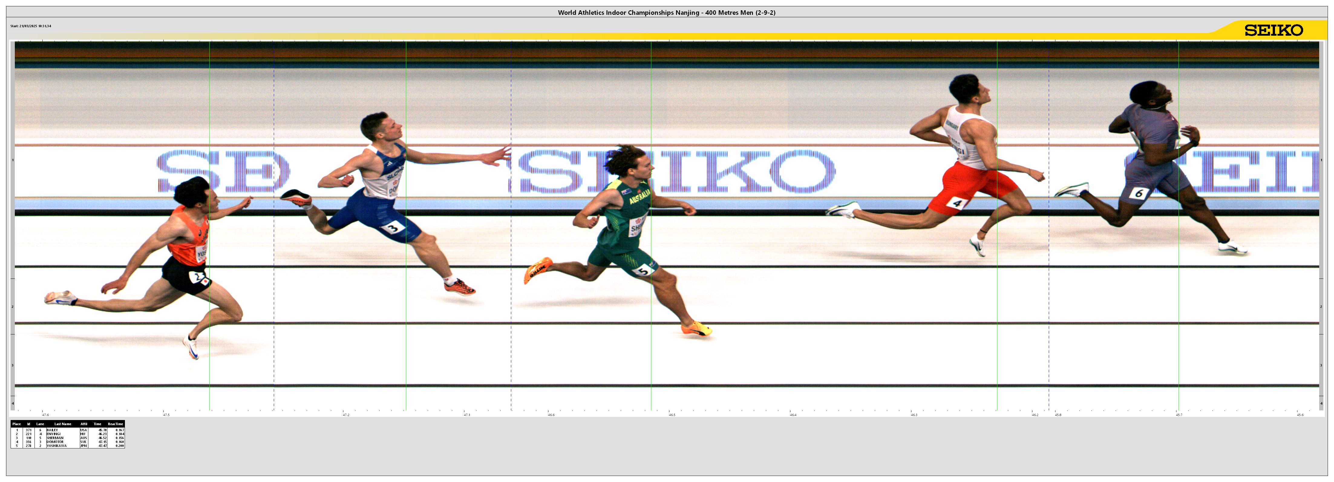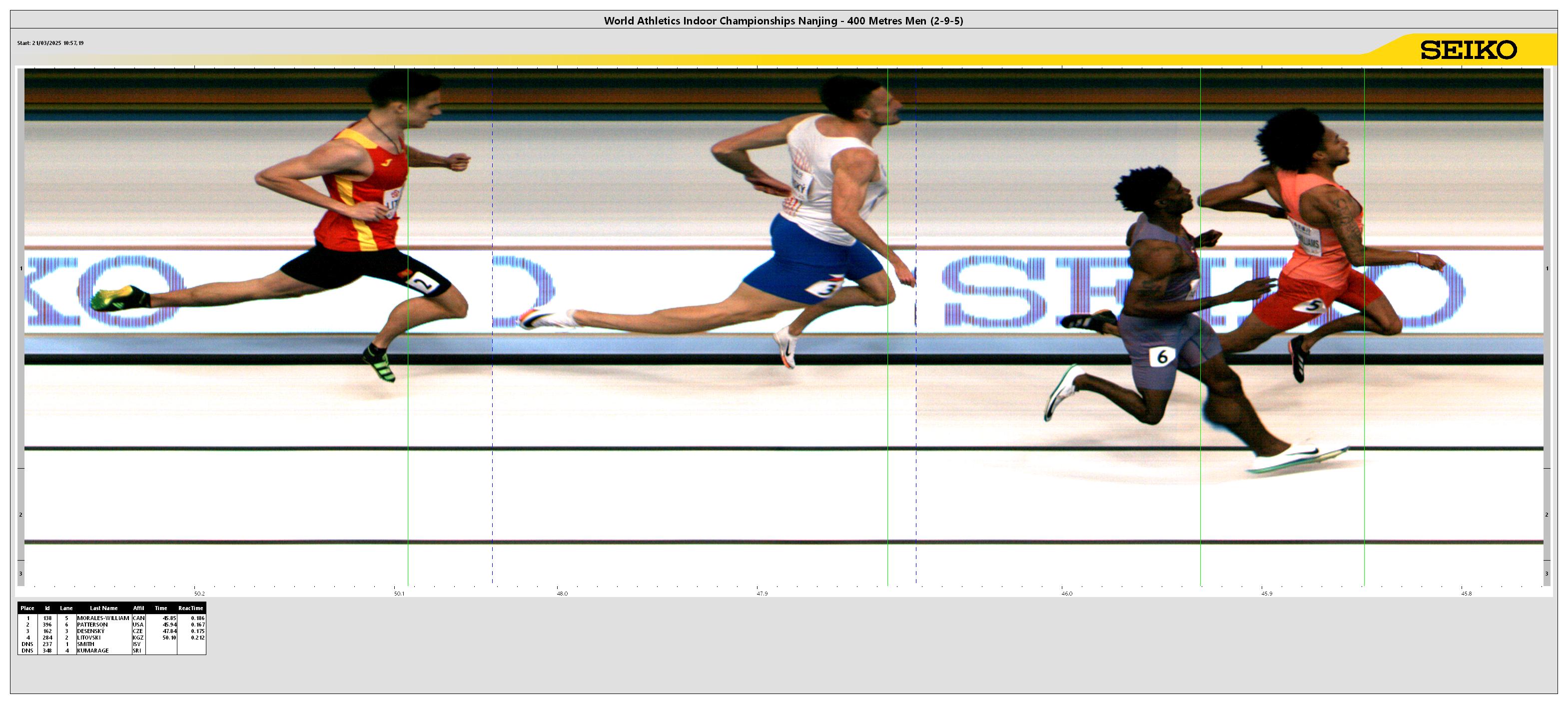 | POS | BIB | ATHLETE | COUNTRY | MARK | Reaction Time |