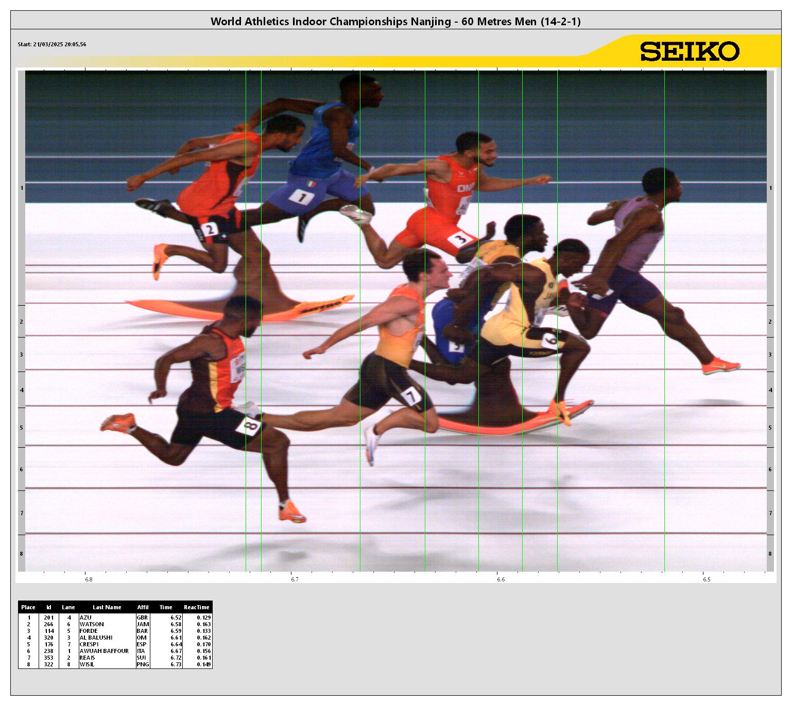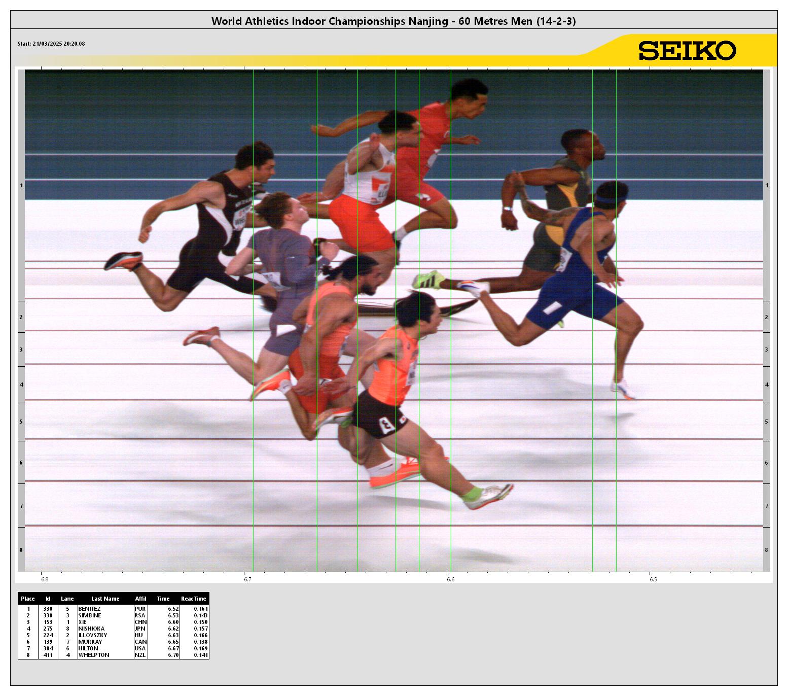 POS BIB ATHLETE COUNTRY MARK Reaction Time