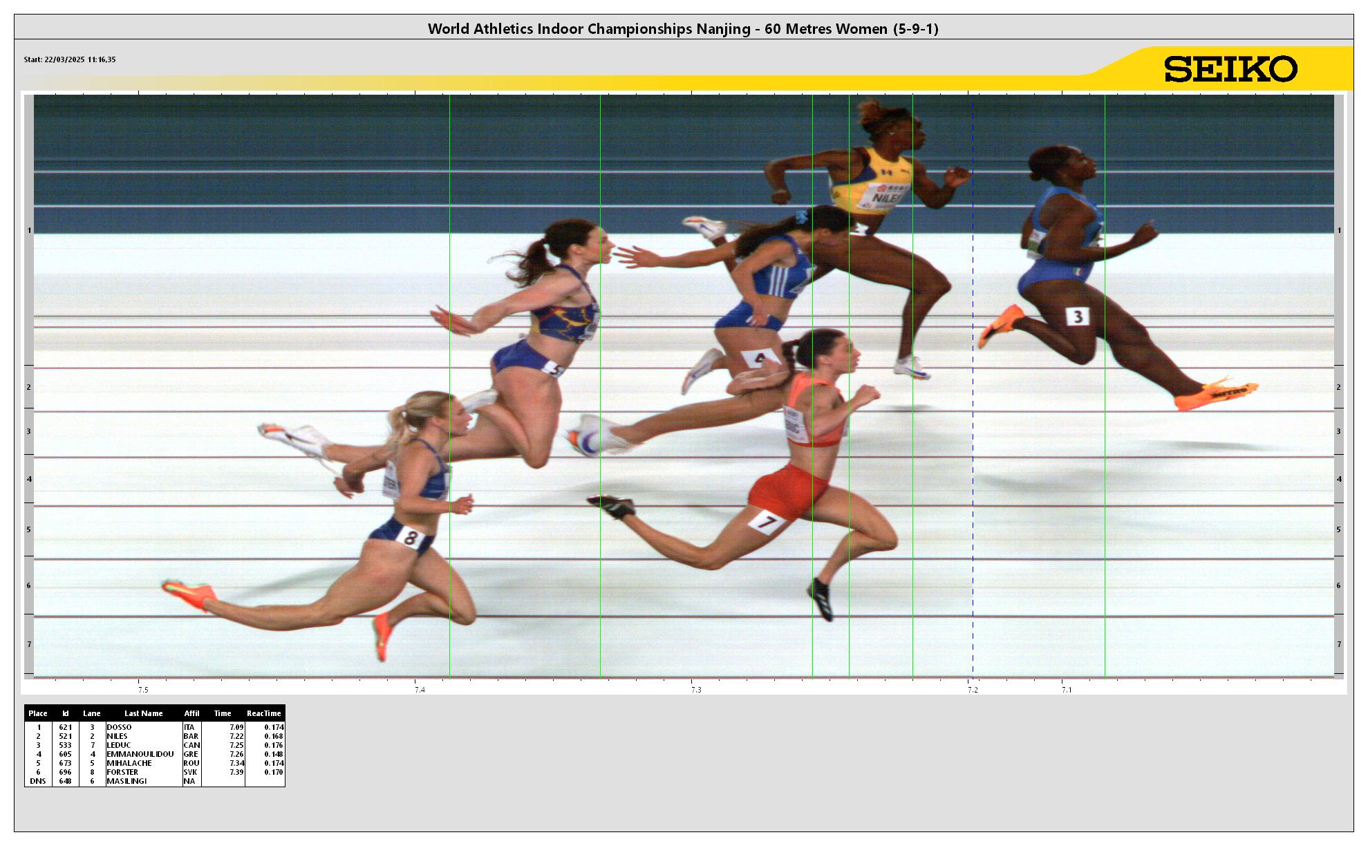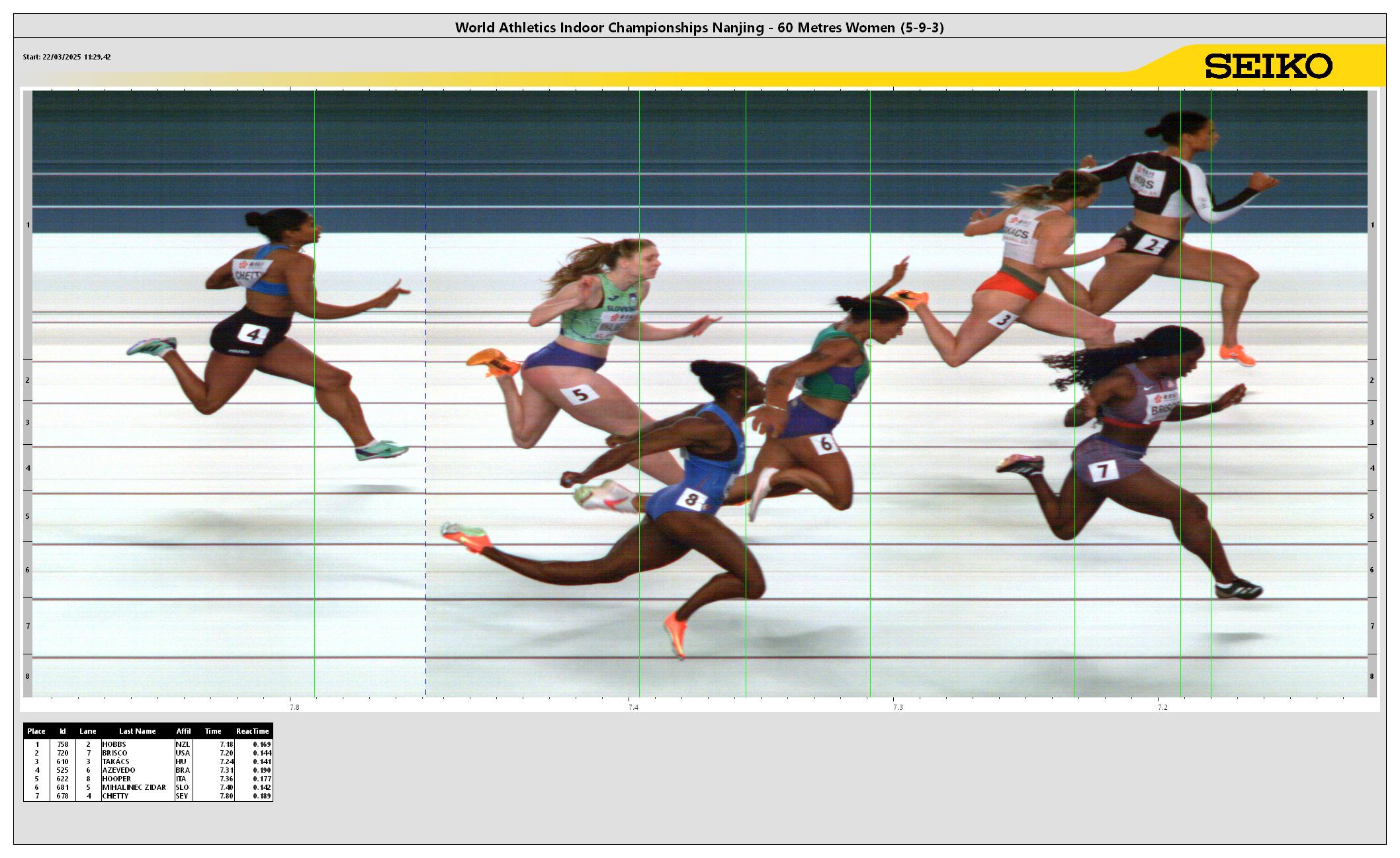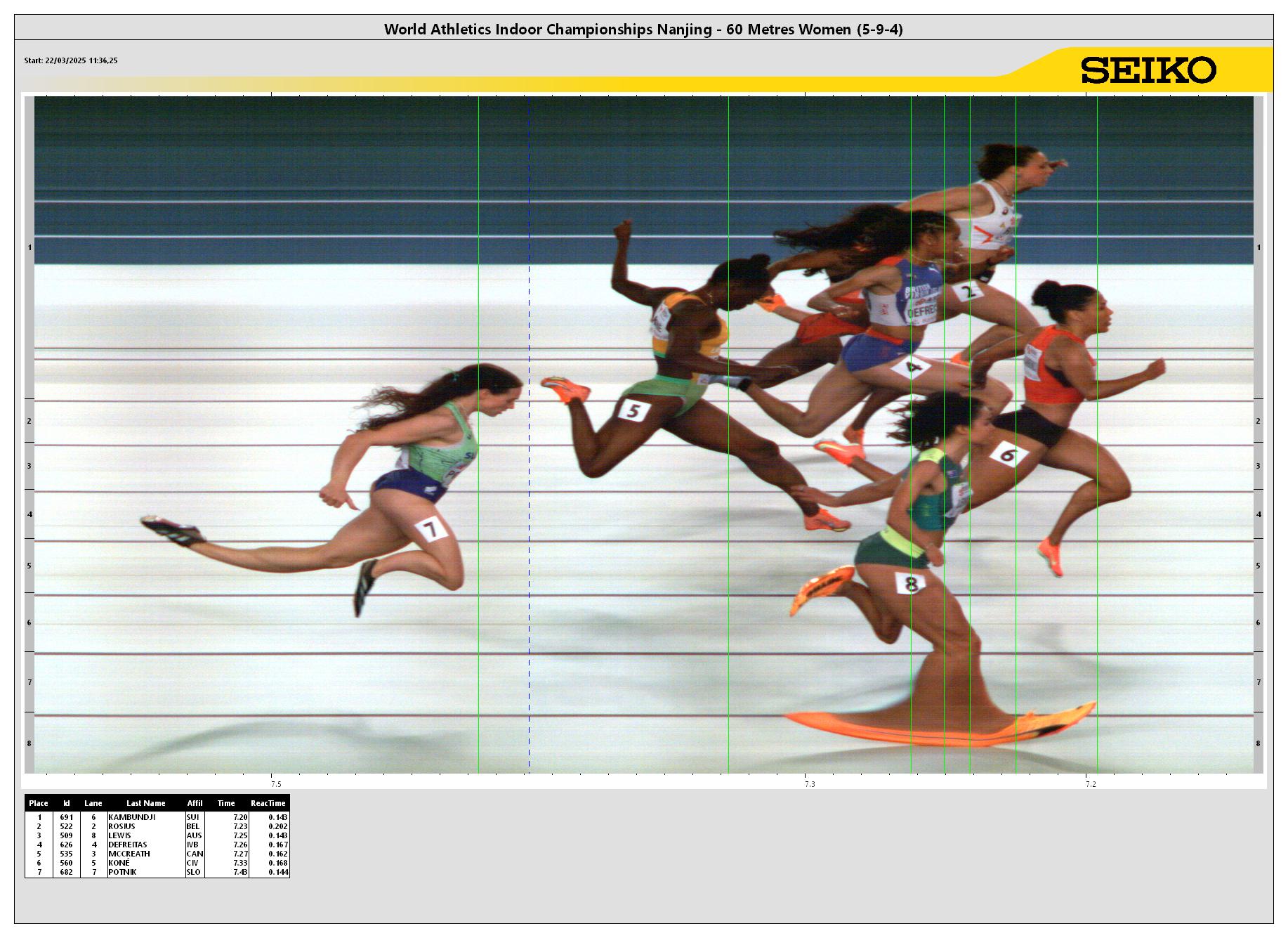 | POS | BIB | ATHLETE | COUNTRY | MARK | ms* | Reaction Time |