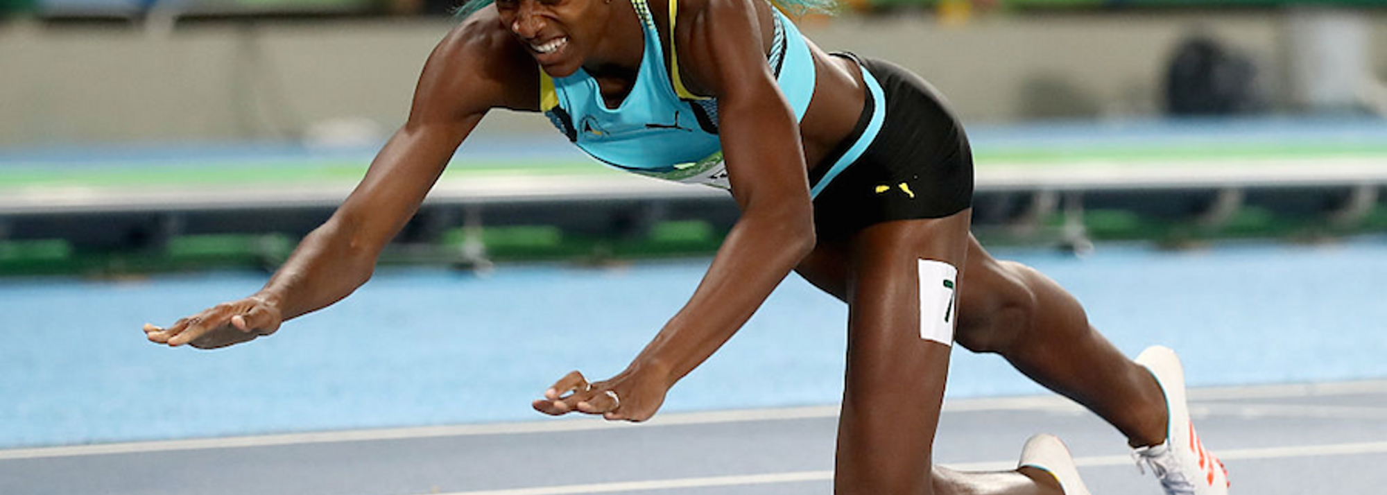 Shaunae Miller crosses the line to take Olympic gold in Rio
