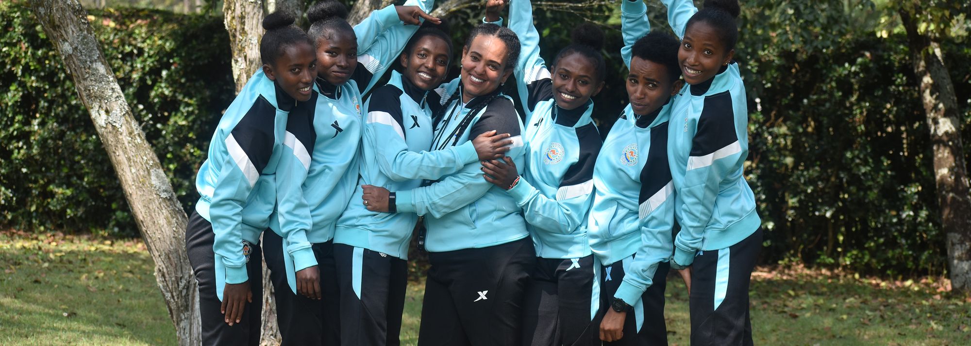 Ariam Hadish, Maria Ali Kote, Almaz Kiflom, coach Shewit Tesfagebriel, Diana Shishay, Fiori Ghebrehiwot and Snit Samson (© Michelle Katami)