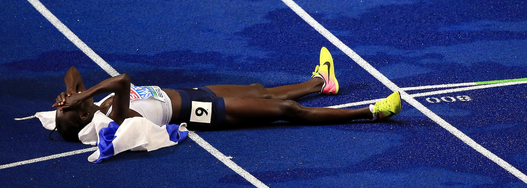Lonah Chemtai Salpeter celebrates gold at the European Championships (© Getty Images)