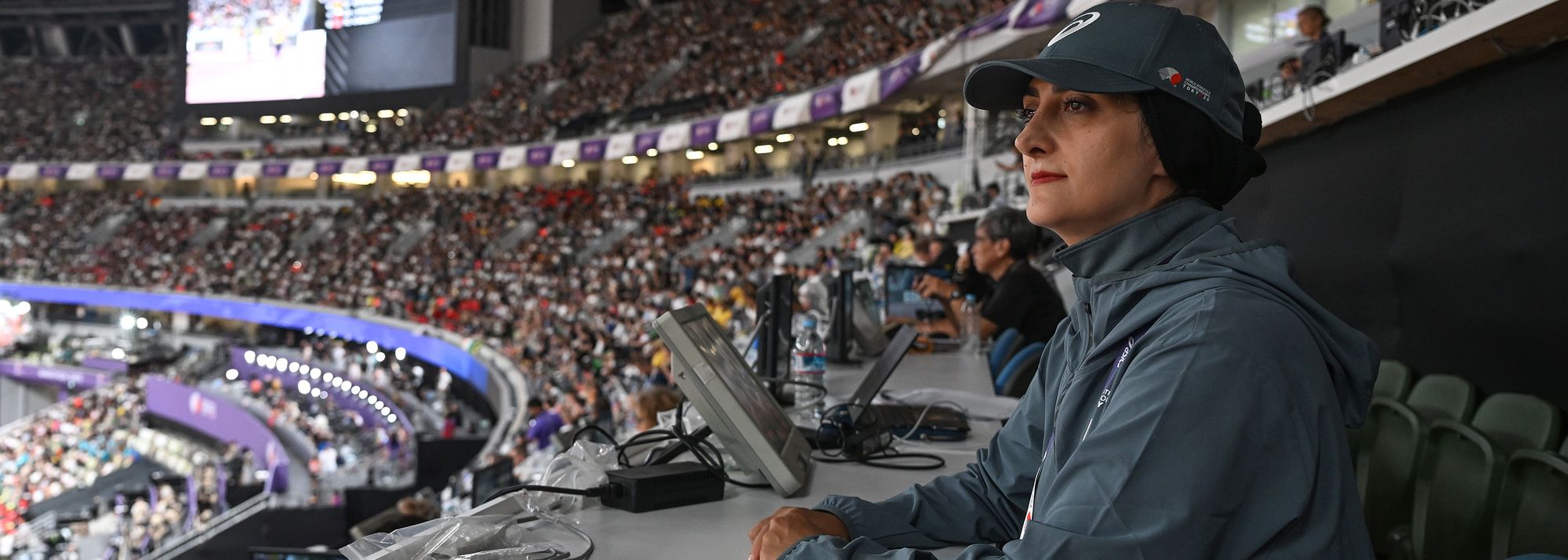 In a room on the third floor of the Japan National Stadium, Maryam Abrishamforoushan Asl stands holding a clipboard, positioned for the women’s 5000m heats alongside the chief photo finish judge, national judges and the technical timing team. Their eyes are fixed on the finish line, with the ambient evening lights beaming as the stadium roars.