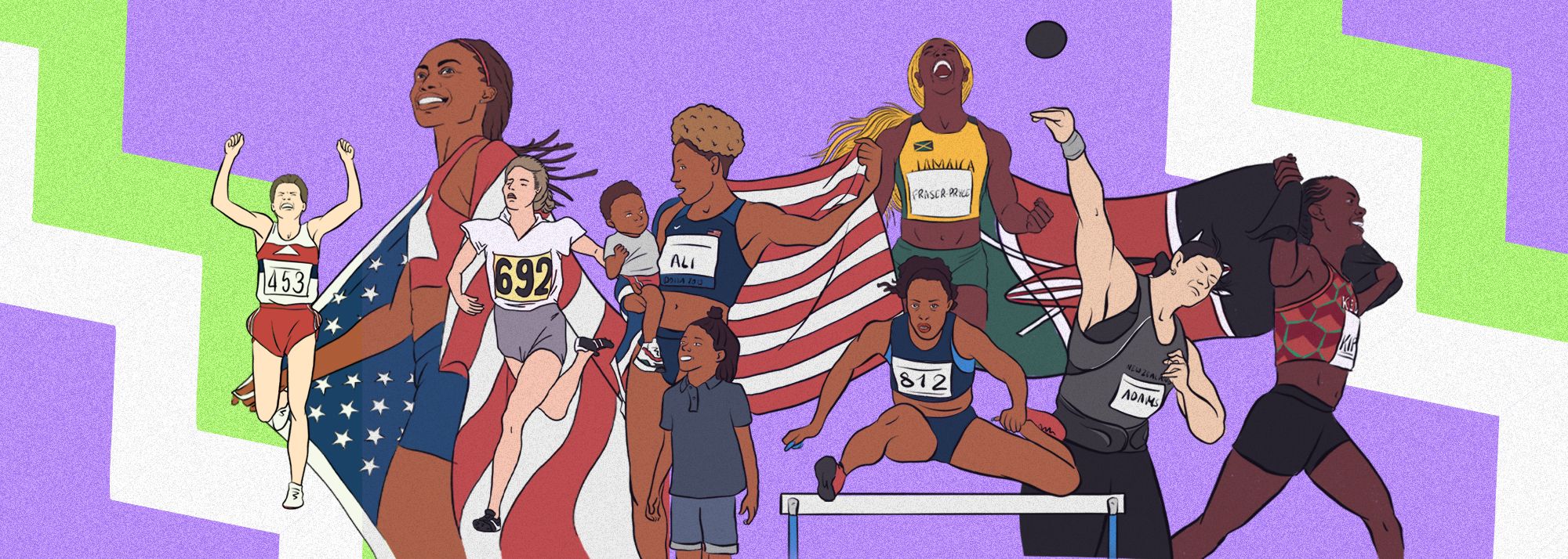 When Nia Ali won the 100m hurdles at the 2019 World Championships, the US athlete celebrated on the track in Doha by carrying her 16-month-old daughter Yuri in her arms as her four-year-old son Titus ran beside her.