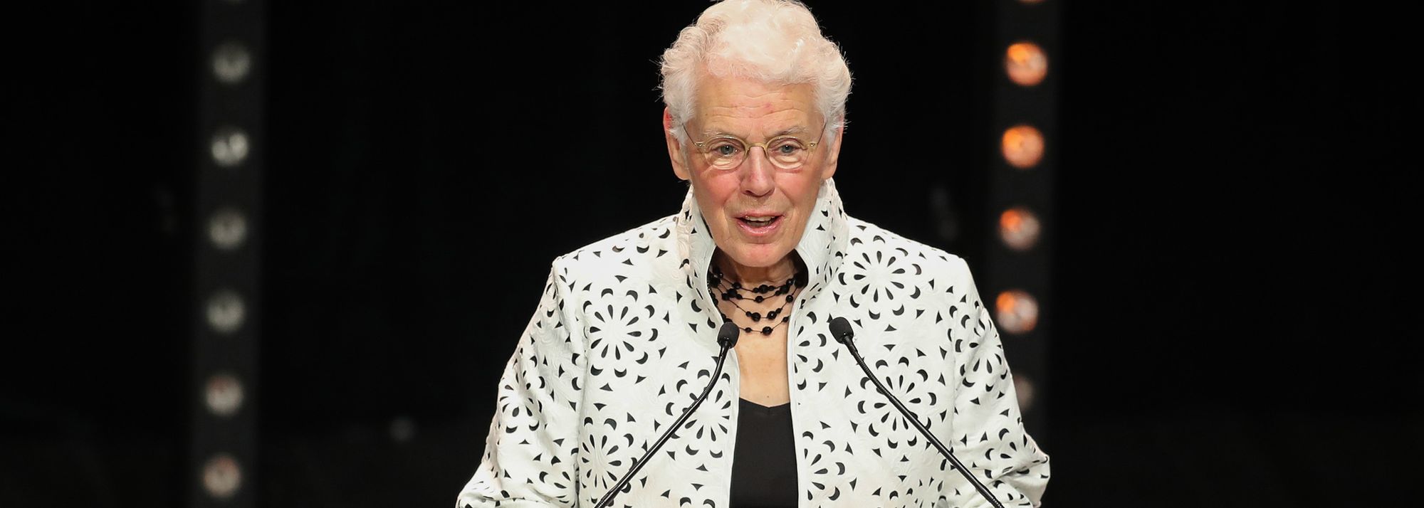 Abby Hoffman delivers a speech prior to giving out the Female Athlete of the Year award in 2019 (© AFP / Getty Images)